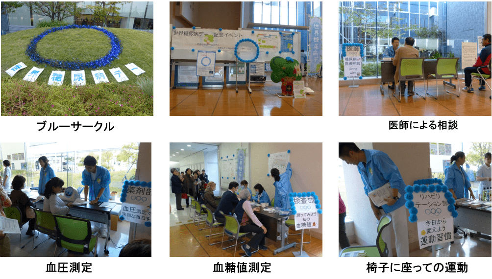関西ろうさい病院では、令和元年11月14日(木)に「世界糖尿病デー」の記念イベントを、当院1階エントランスホールで開催しました。今年の当院でのテーマは「目指せ笑顔の金メダル」です。