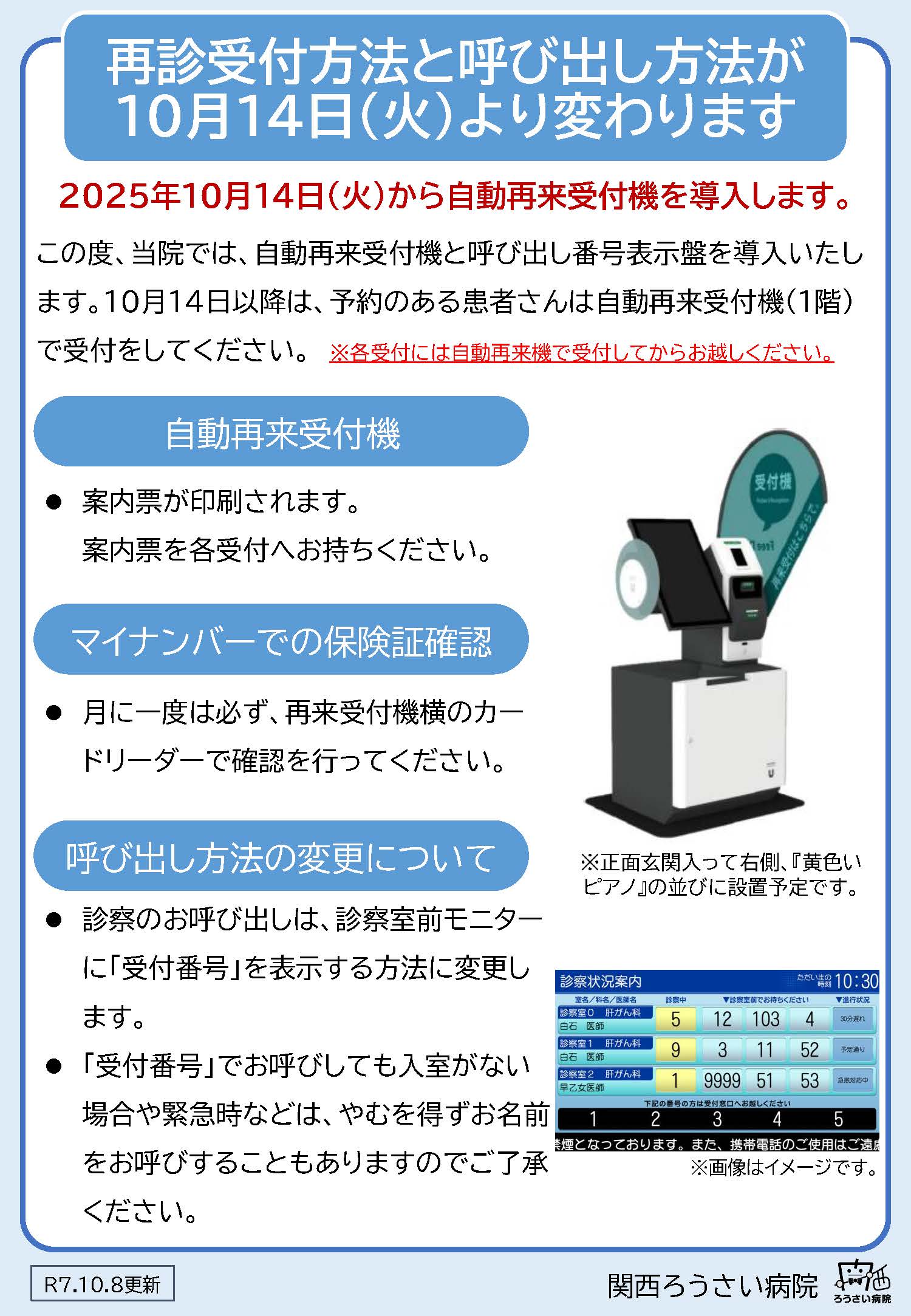 この度、当院では、自動再来受付機と呼び出し番号表示盤を導入いたします。